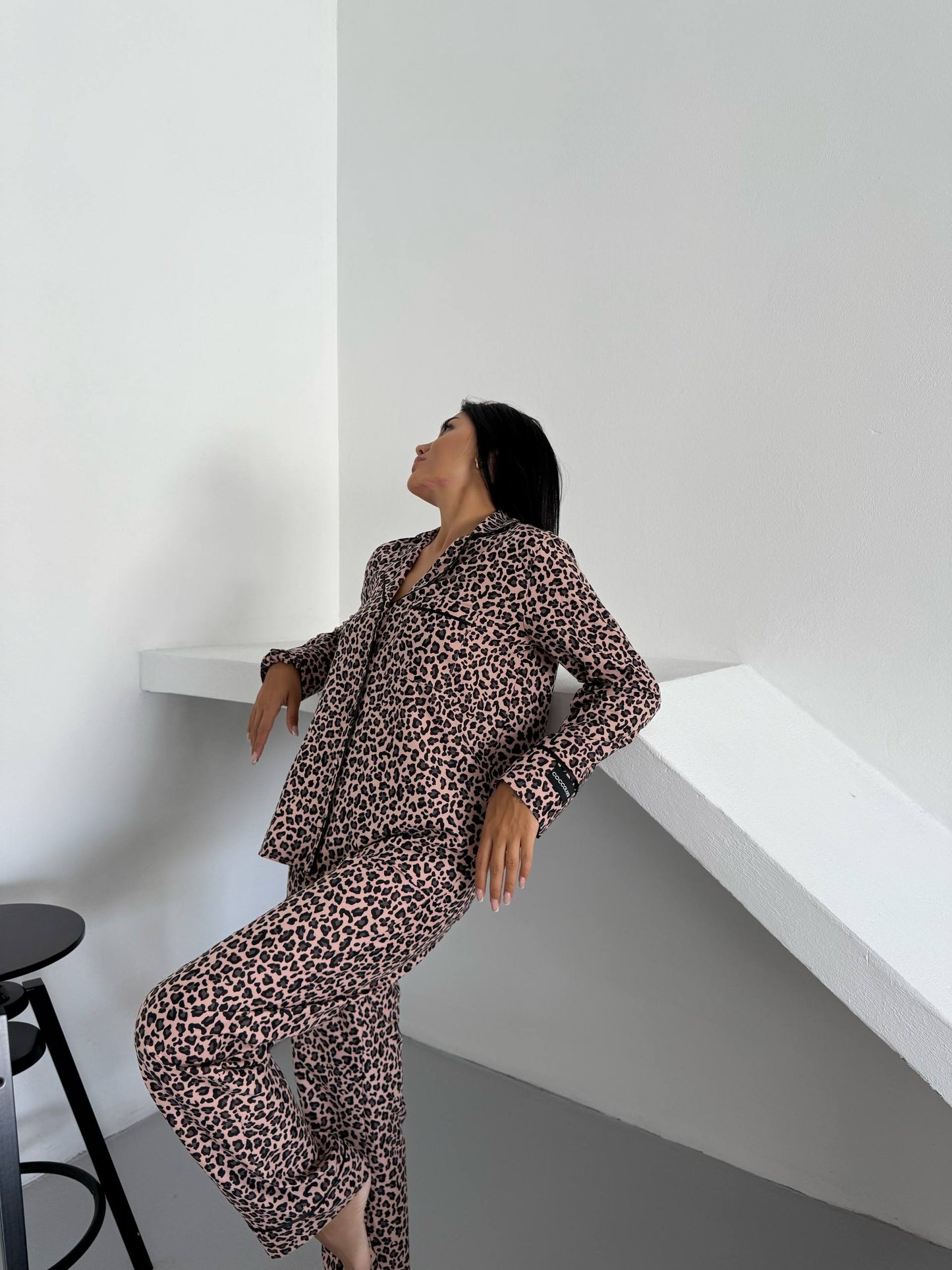 Unleash your wild side in this pink leopard satin pajama set. 💖🐆