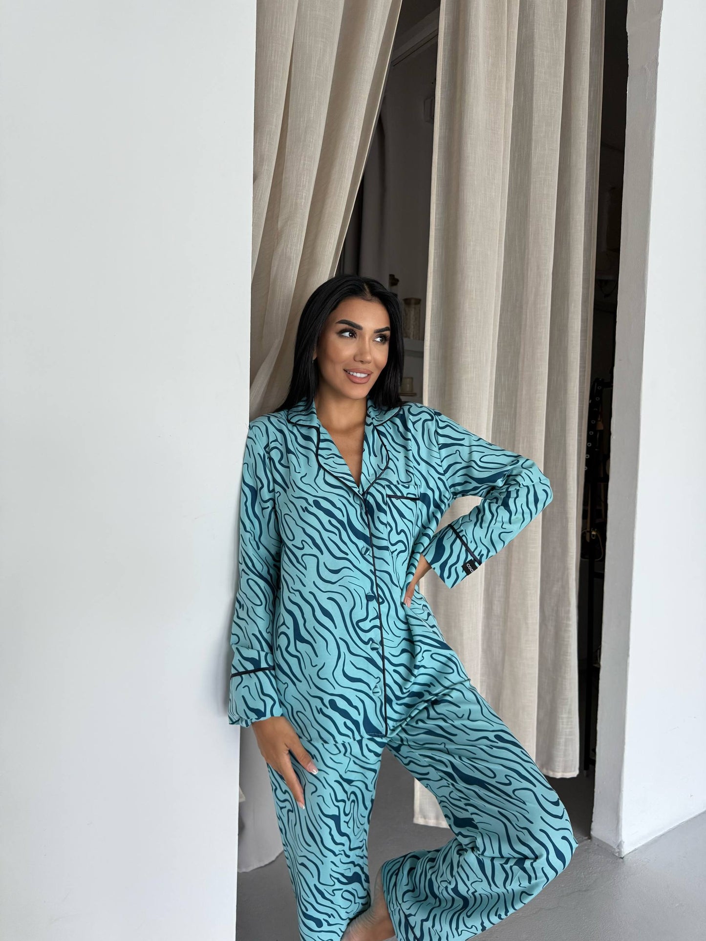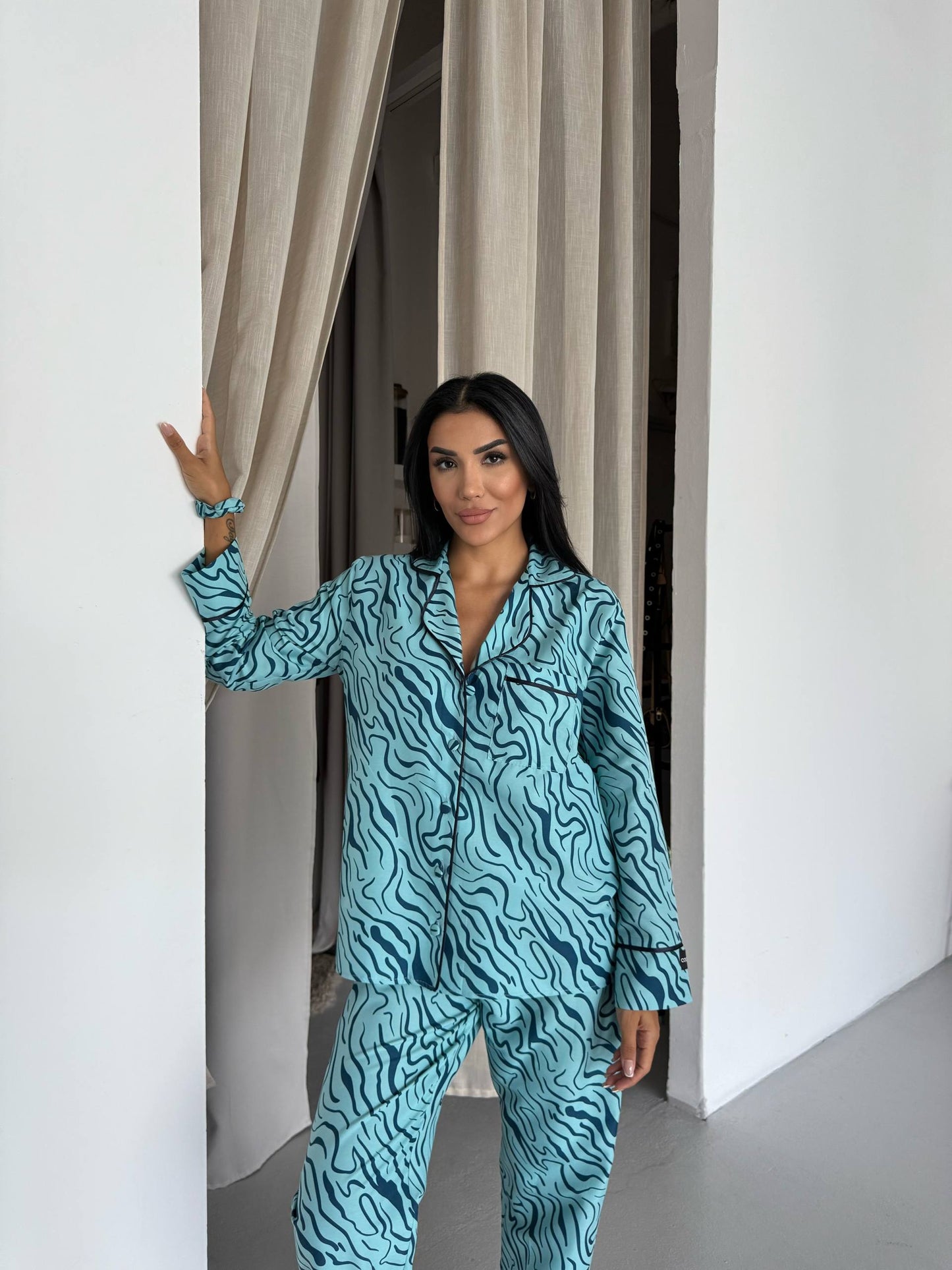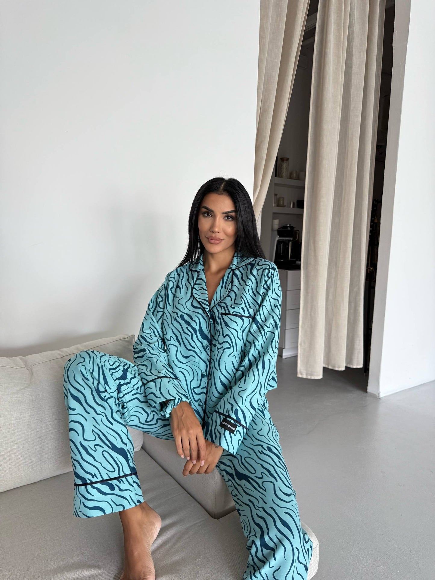 Aqua Blue Tiger Print Satin Pajama Set