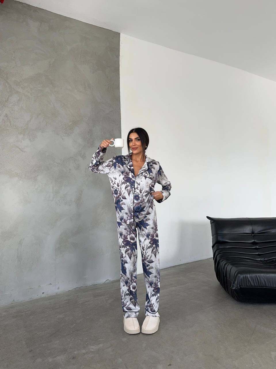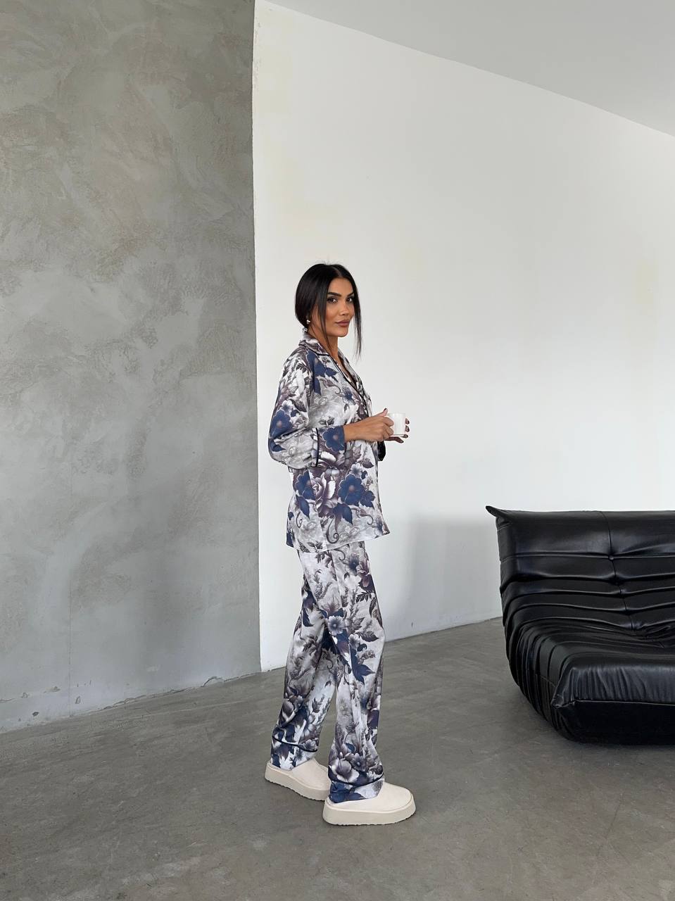 Designed in deep navy and soft gray tones with bold floral patterns, it brings both sophistication and comfort to your evenings. Perfect for cozy nights in, relaxed mornings with coffee, or as a luxurious gift. ✨☕